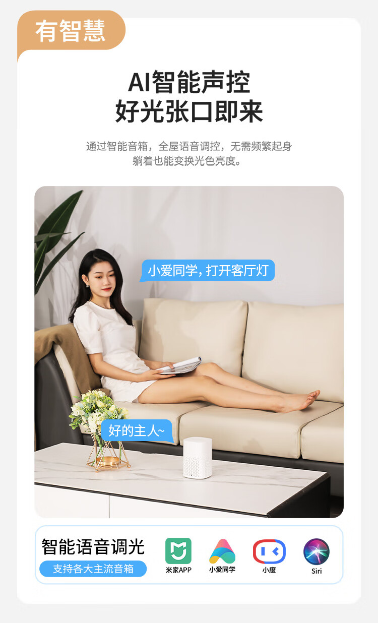 雷士(NVC)LED吸顶灯现代简约灯具智能Ra95灯饰