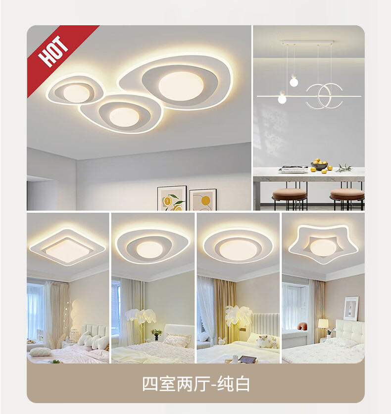 VVS美学灯新款全屋现代简约后现代大气家用客厅灯个性北欧灯饰套餐大三室两厅无极+餐厅白光包安装