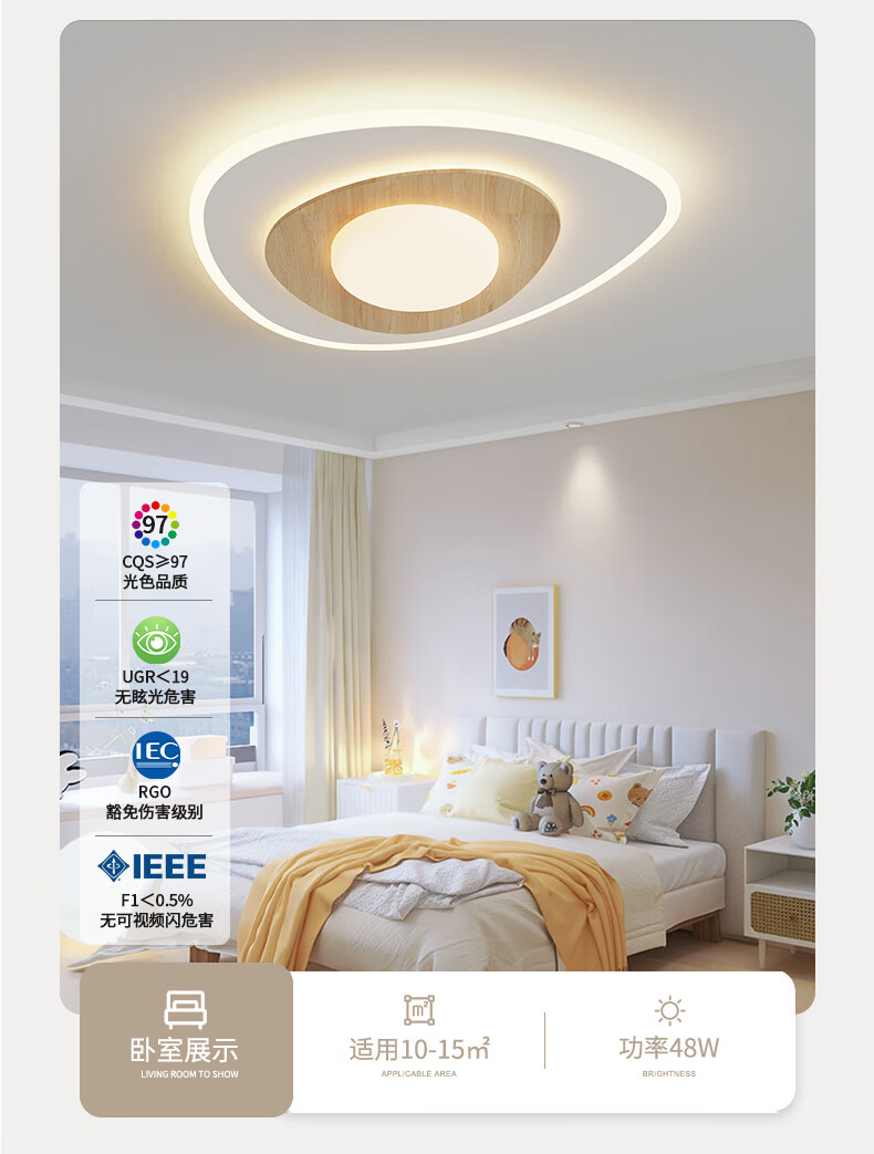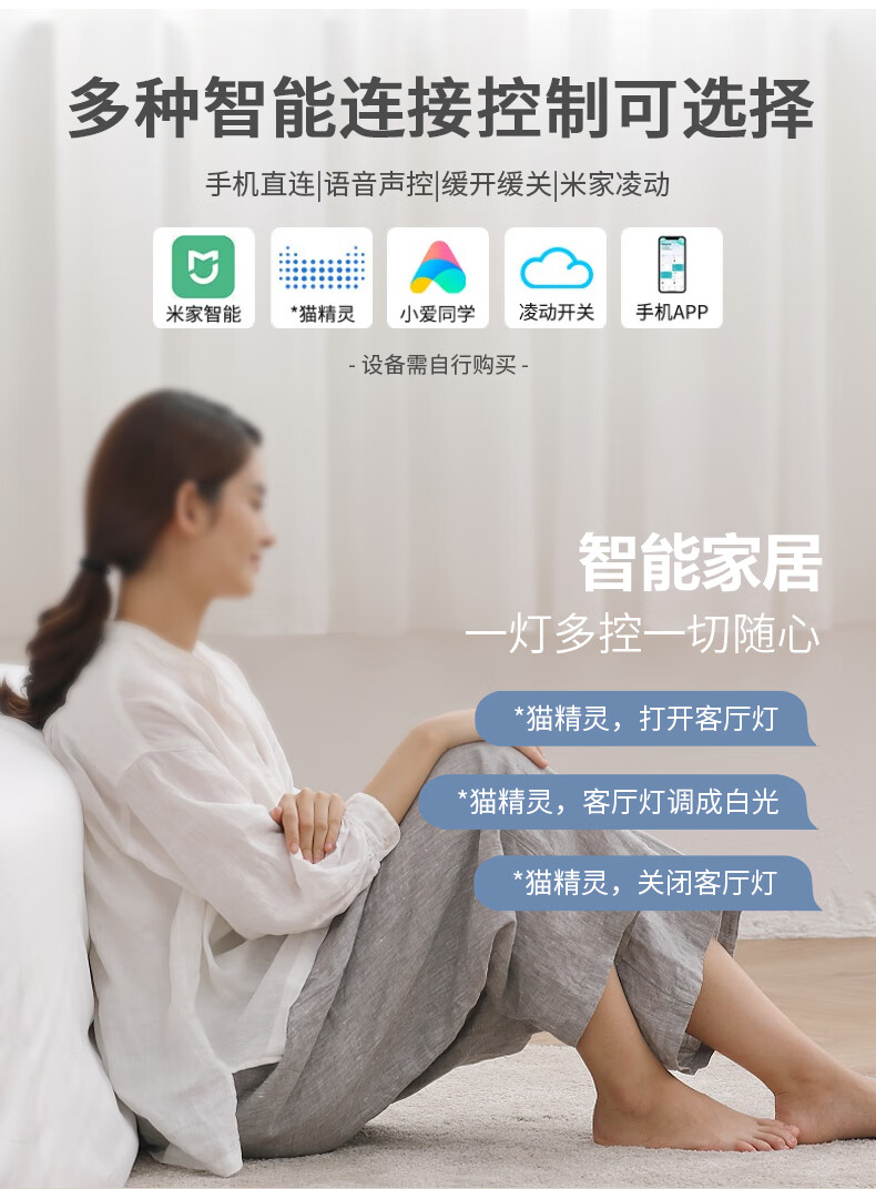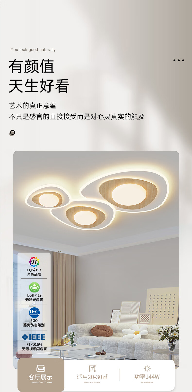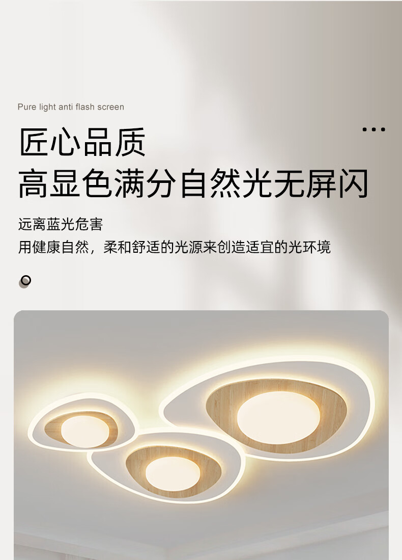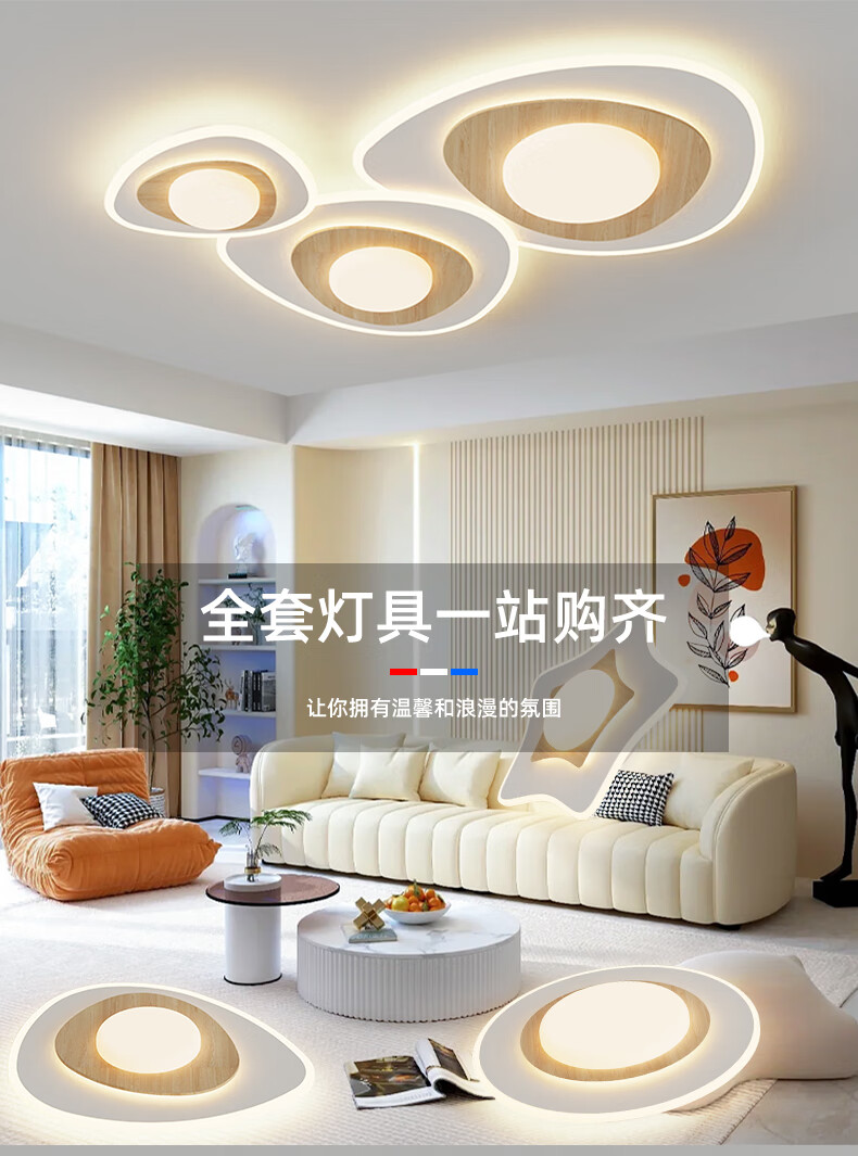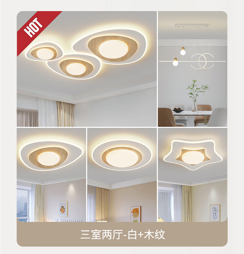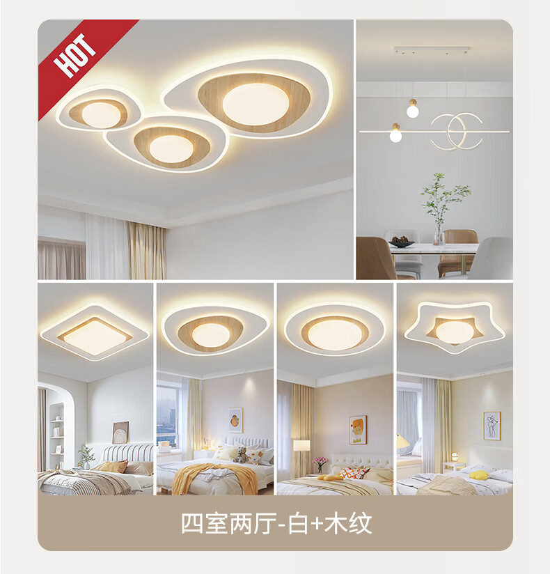 三春三夏客厅led吸顶灯现代简约大气原木奶油风套餐组合全屋智能语音灯具包安装+木纹【四室两厅】无极遥控+支持天猫精灵