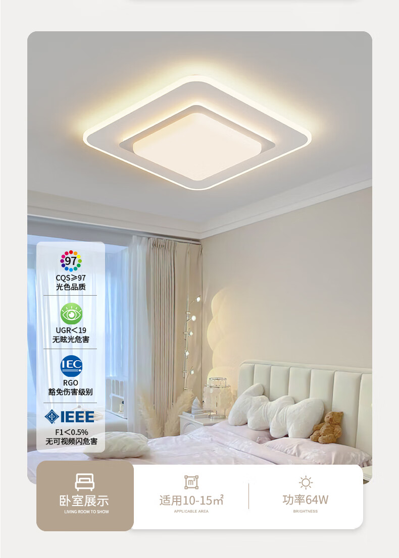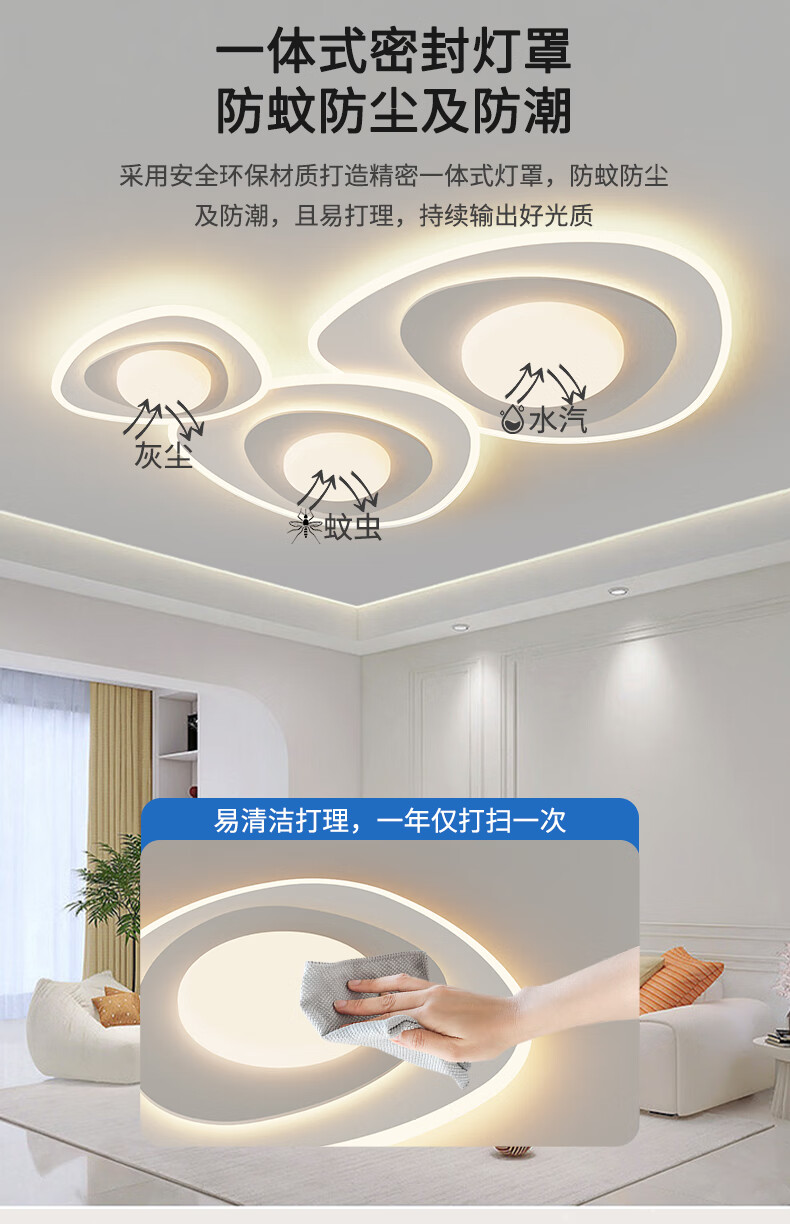 VVS新款北欧灯具套餐led吸顶灯现代简约客厅灯长方形个性主卧房间灯大三室两厅无极调光包安装