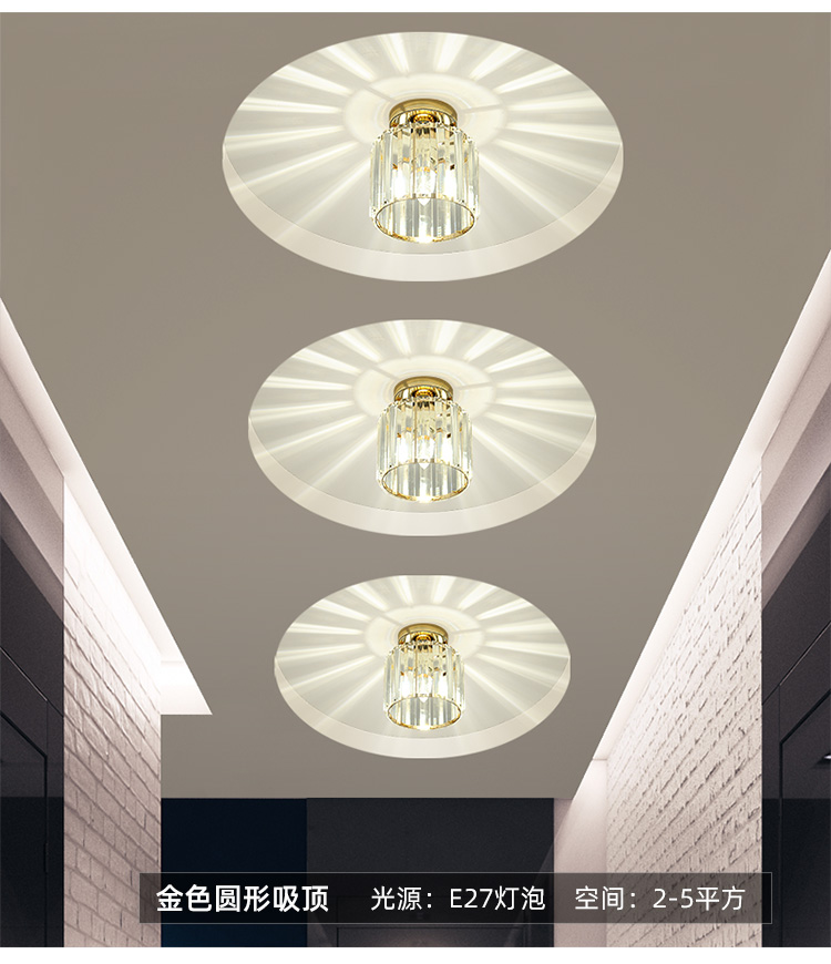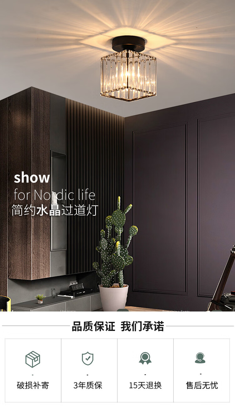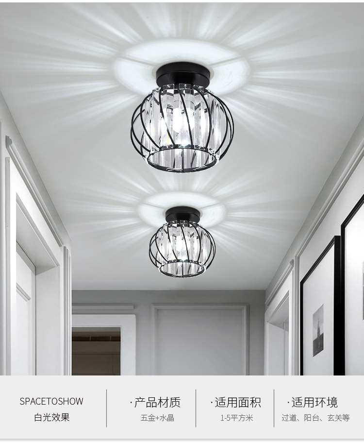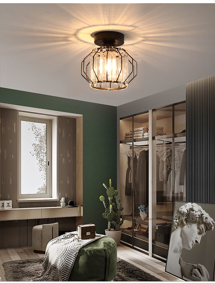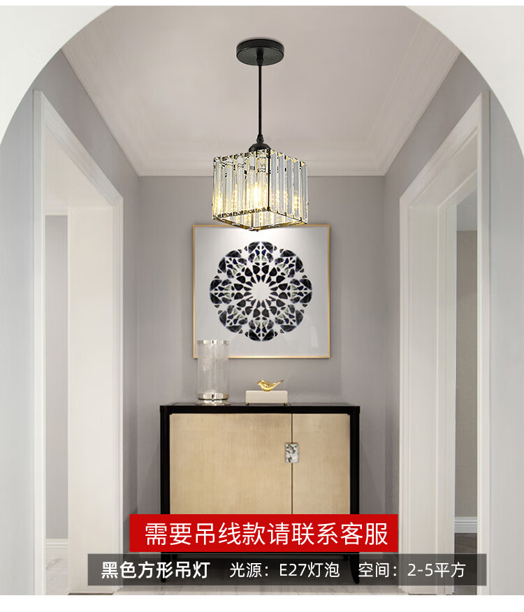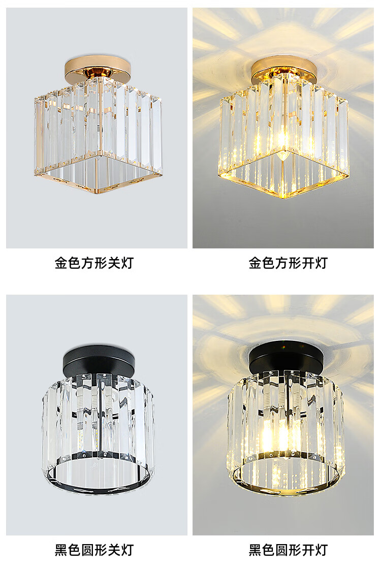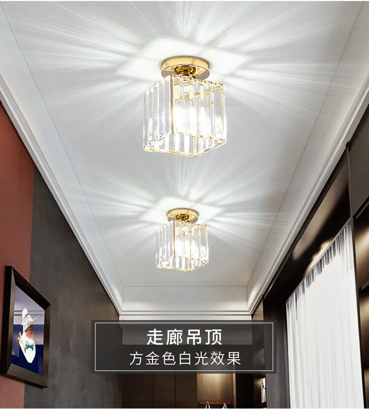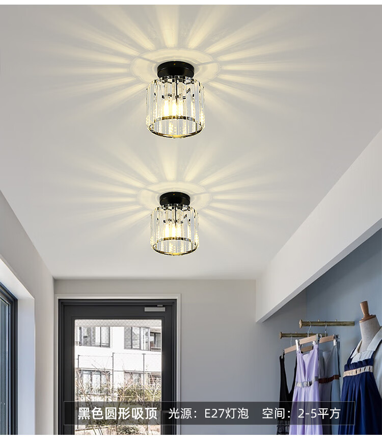 卡诺爱迦水晶过道灯走廊灯现代简约创意玄关阳台吸顶灯【黑色】方形边长14cm