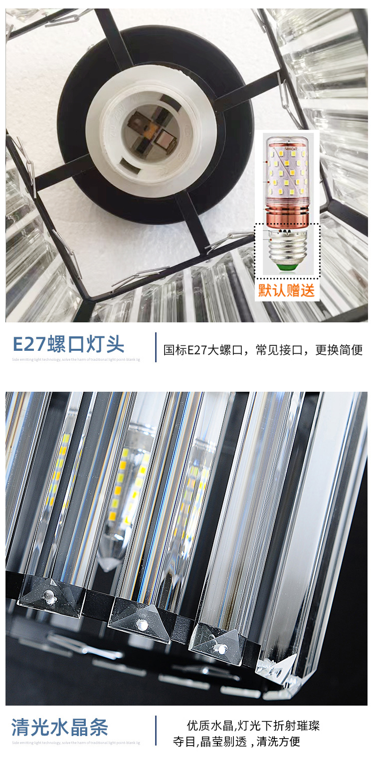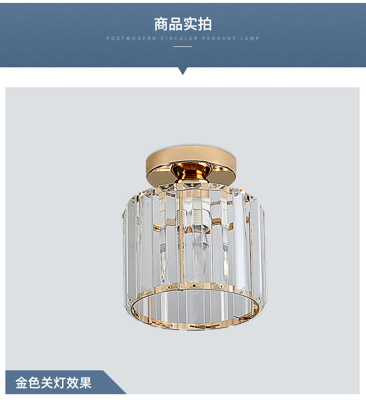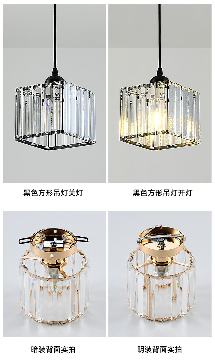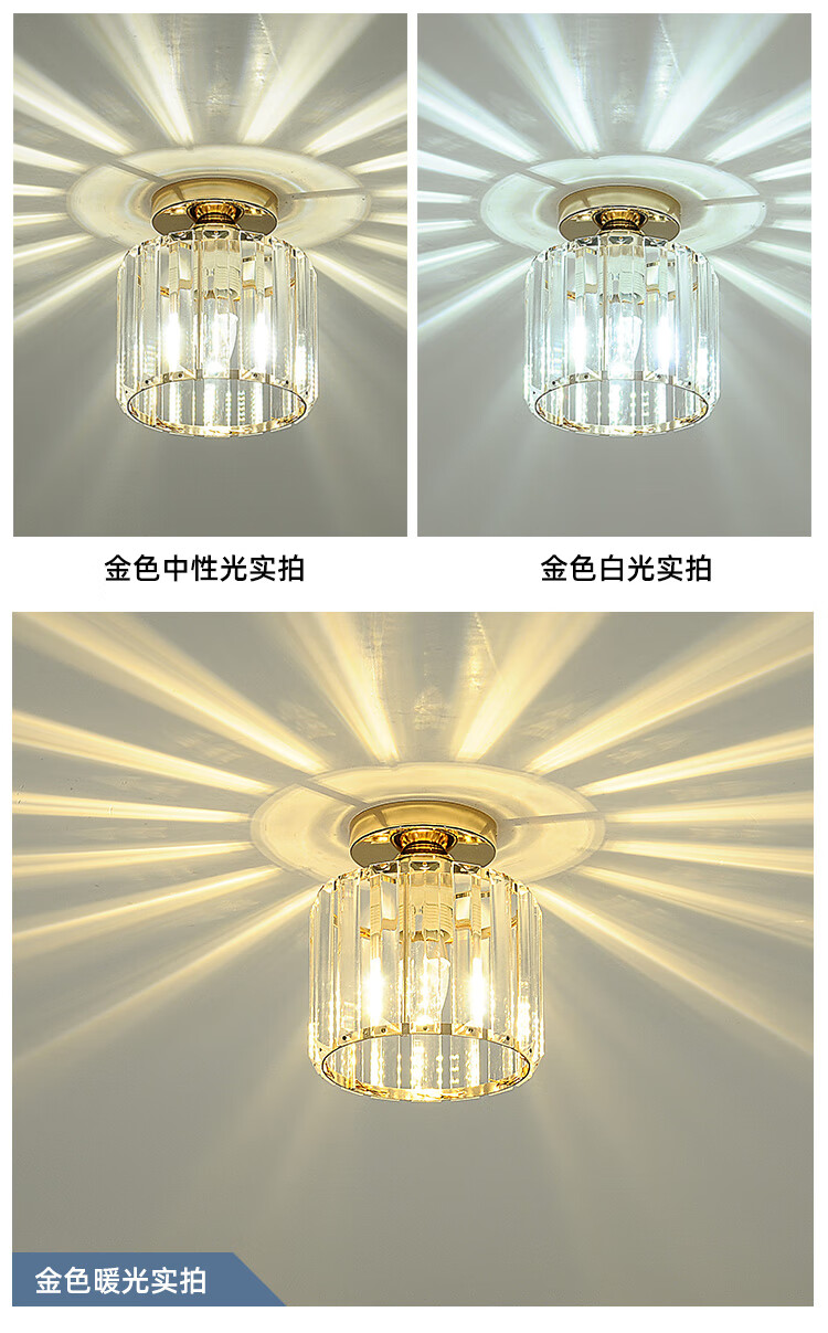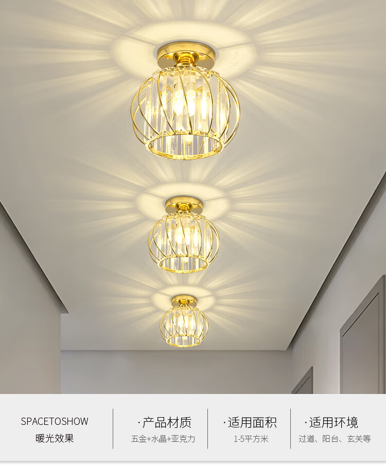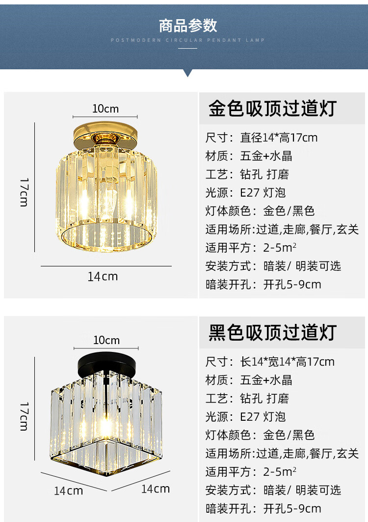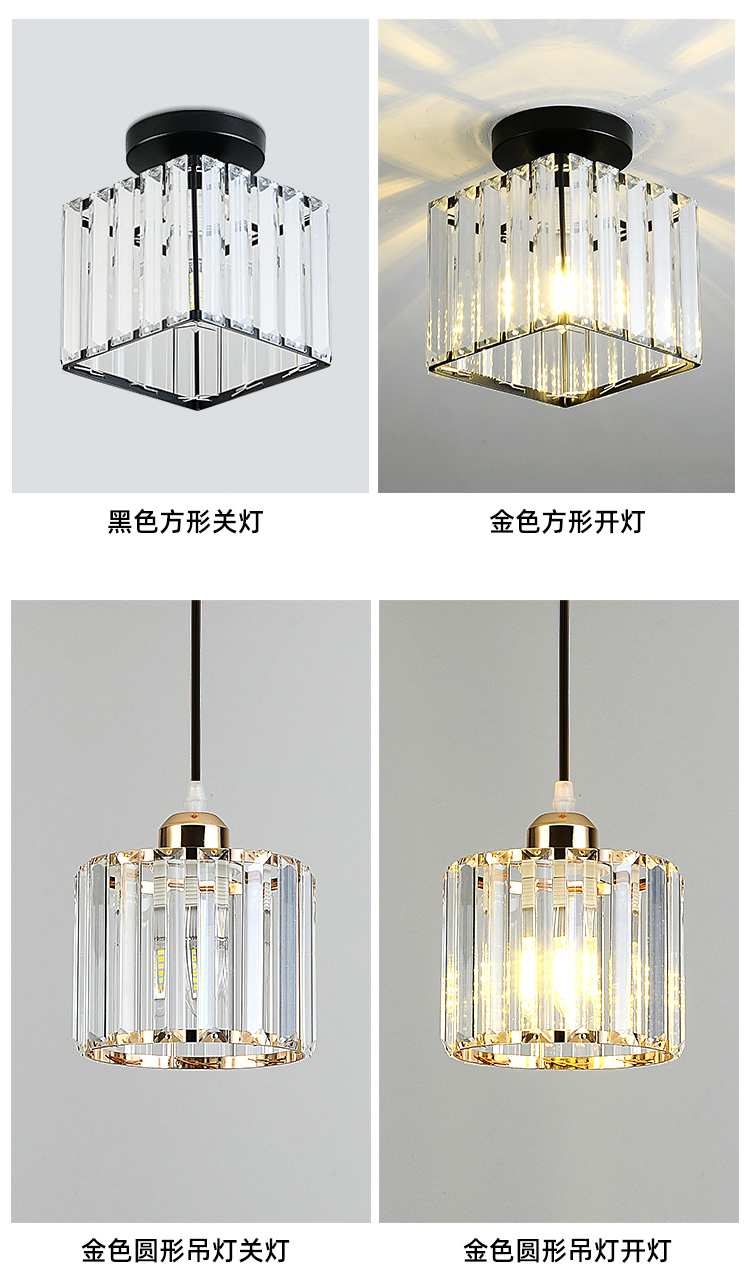 卡诺爱迦水晶过道灯走廊灯现代简约创意玄关阳台吸顶灯【黑色】方形边长14cm