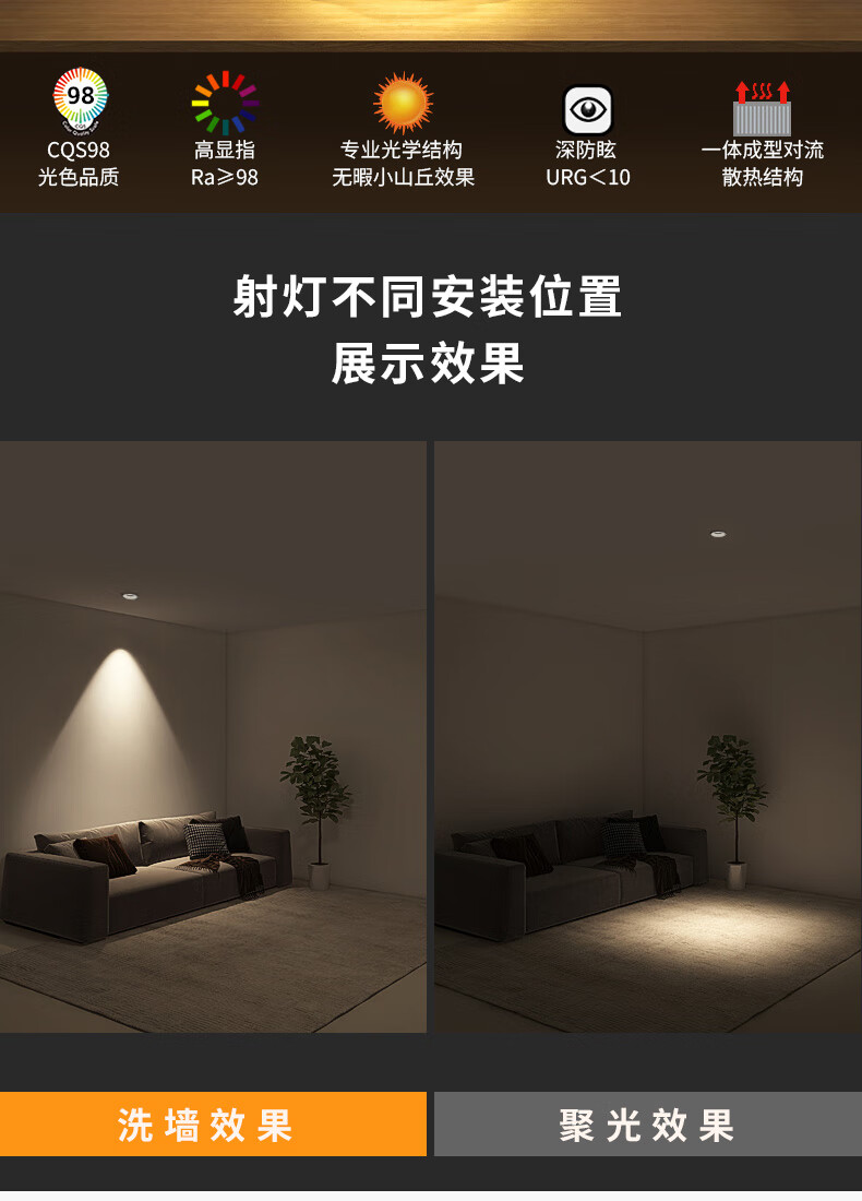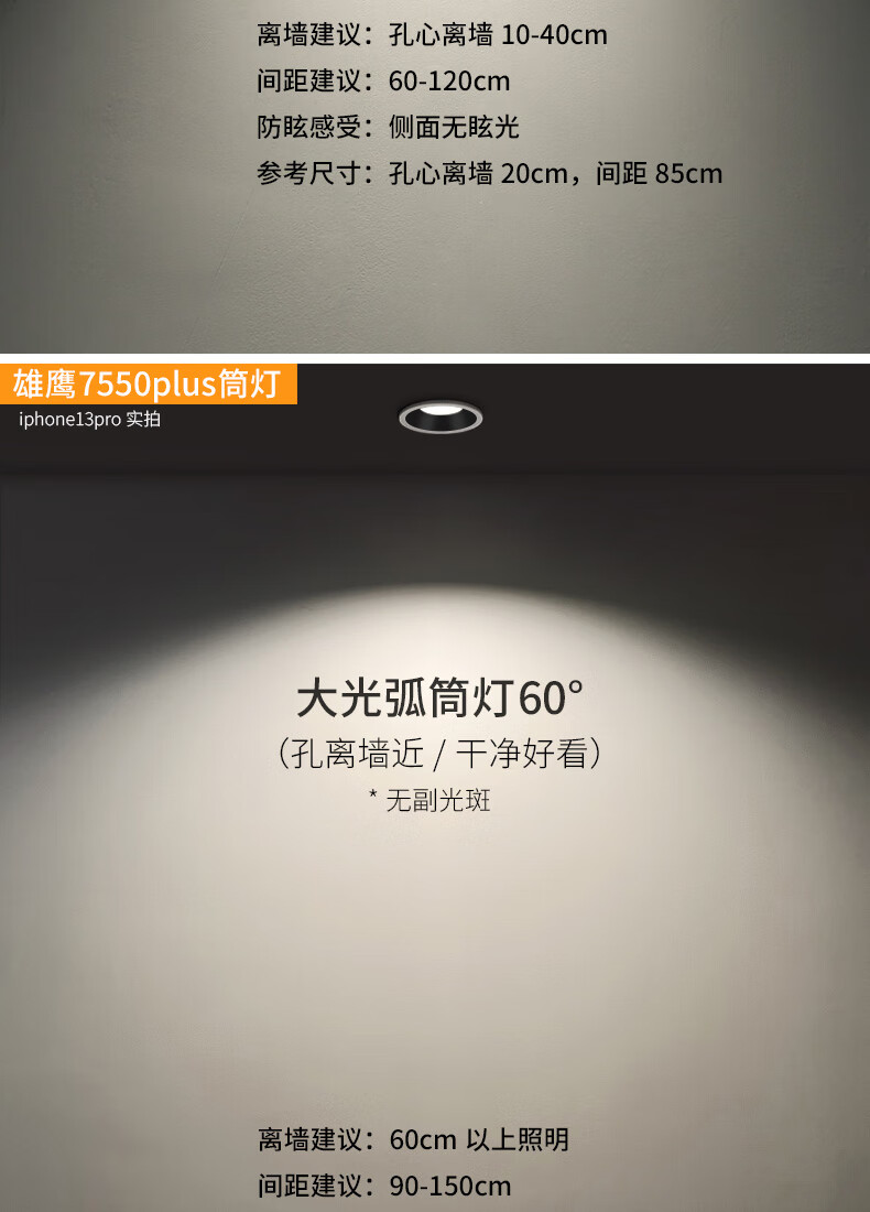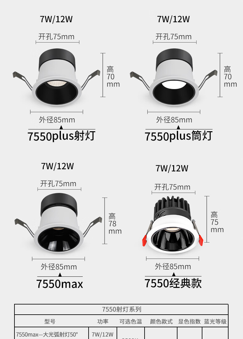 爱多辉(Aiduohui)爱多辉深防眩射灯led天花灯嵌入式家用筒灯cob客厅无主灯7550新升级plus射灯36°-7w白杯4000k