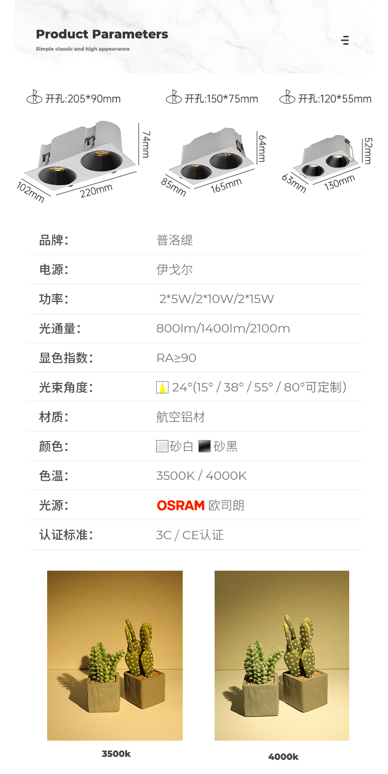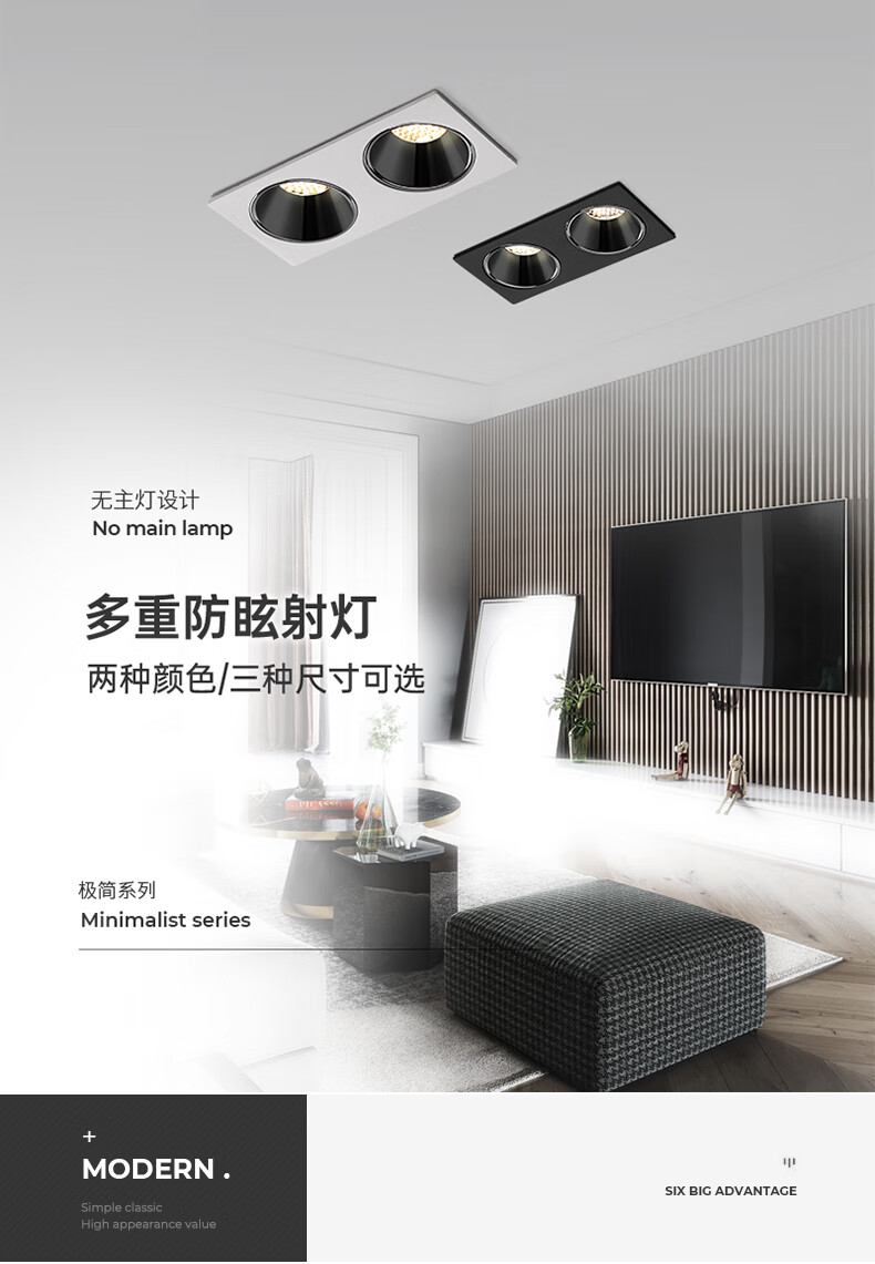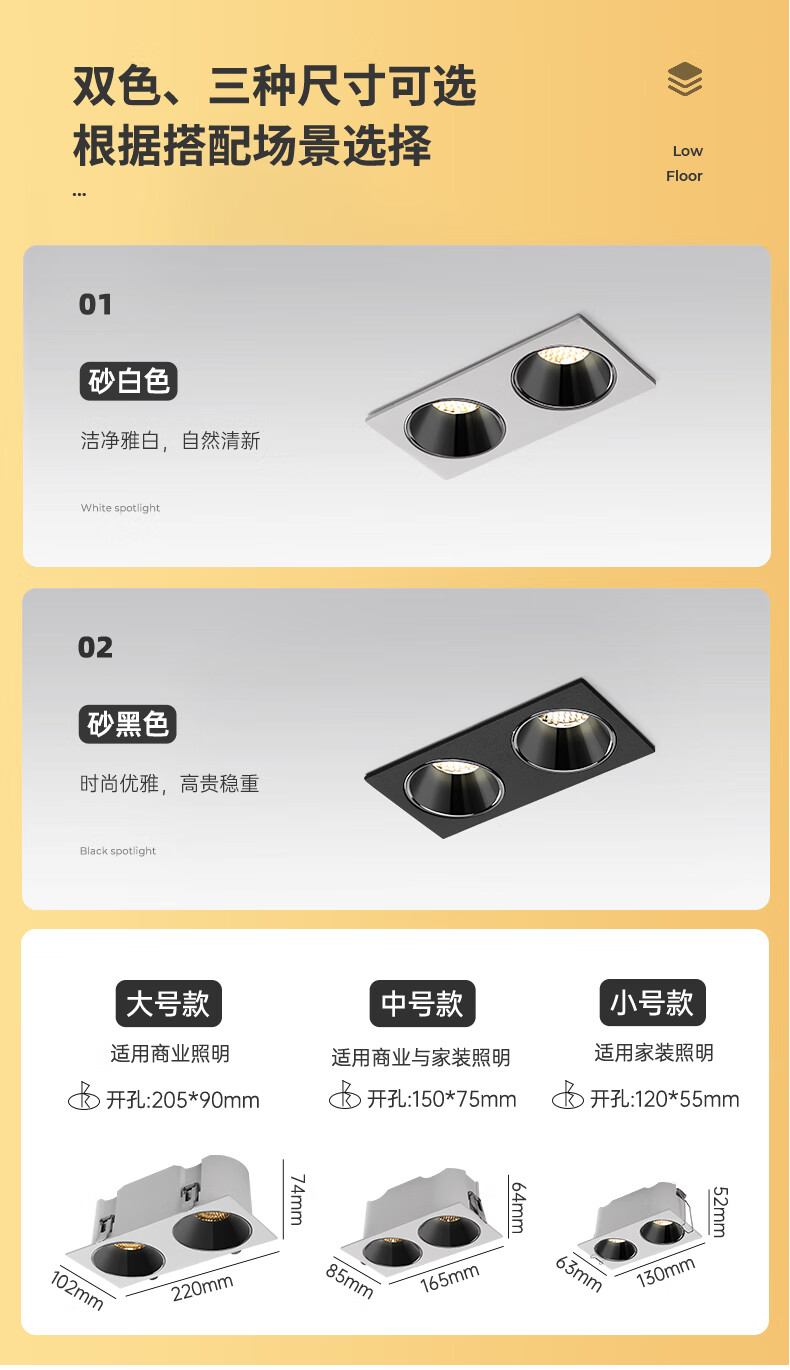普洛缇(PULUOTI)双头射灯嵌入式双头斗胆灯书房防眩led客厅天花无主灯照明筒灯砂白双头-小号-2X5W-3500K