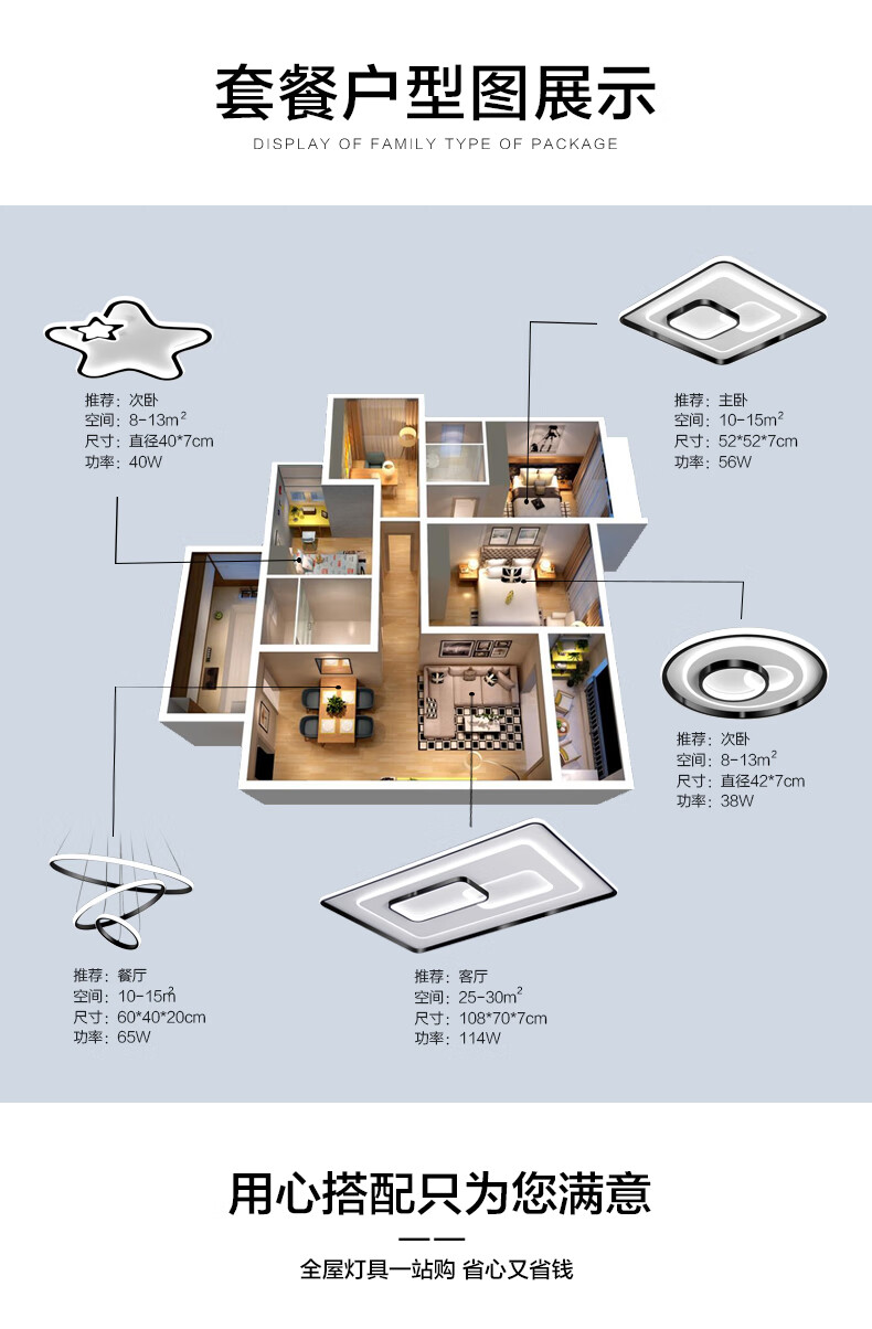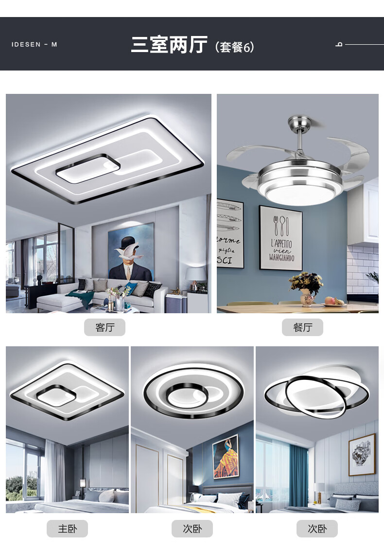 VVS美学灯新款全屋现代简约后现代大气家用客厅灯个性北欧灯饰套餐大三室两厅无极+餐厅白光包安装