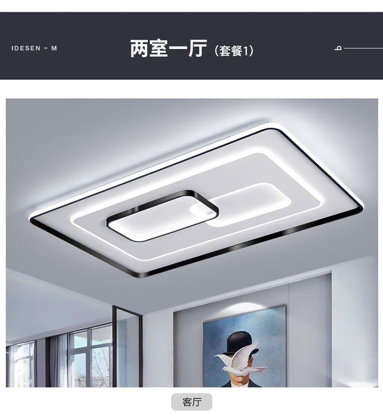 VVS新款北欧灯具套餐led吸顶灯现代简约客厅灯长方形个性主卧房间灯大三室两厅无极调光包安装