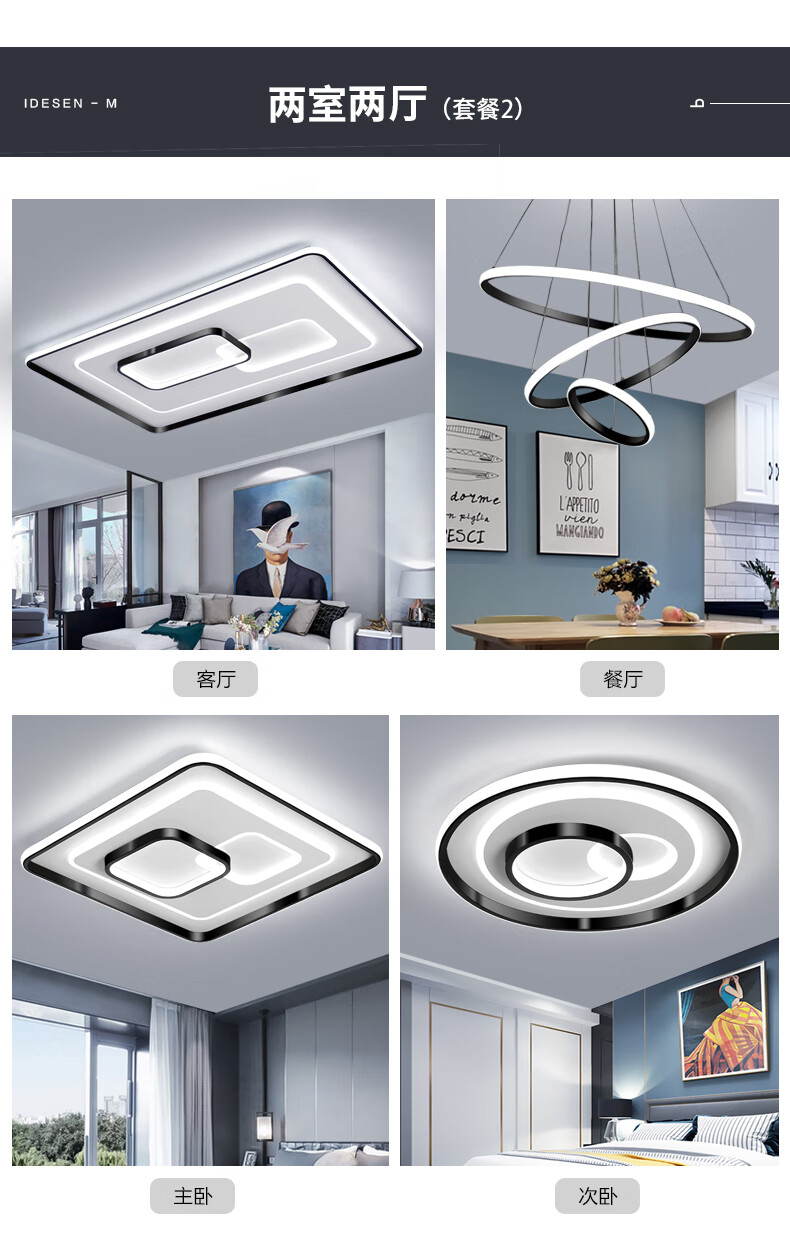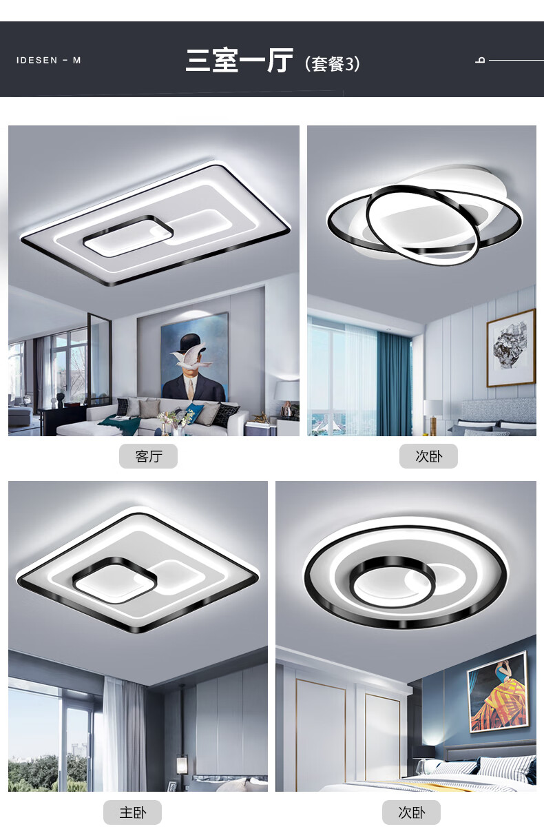 菲奇普(FEIQIPU)客厅吸顶灯星空轻奢后现代北欧全屋智能语音灯具套餐组合卧室灯黑色套餐:三室两厅1(包安装)无极遥控调光+智能语音