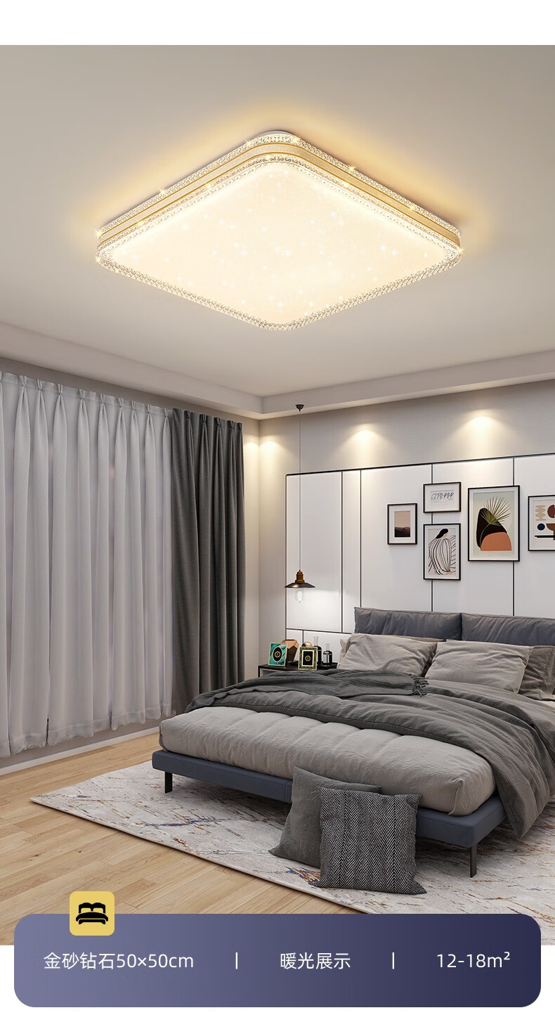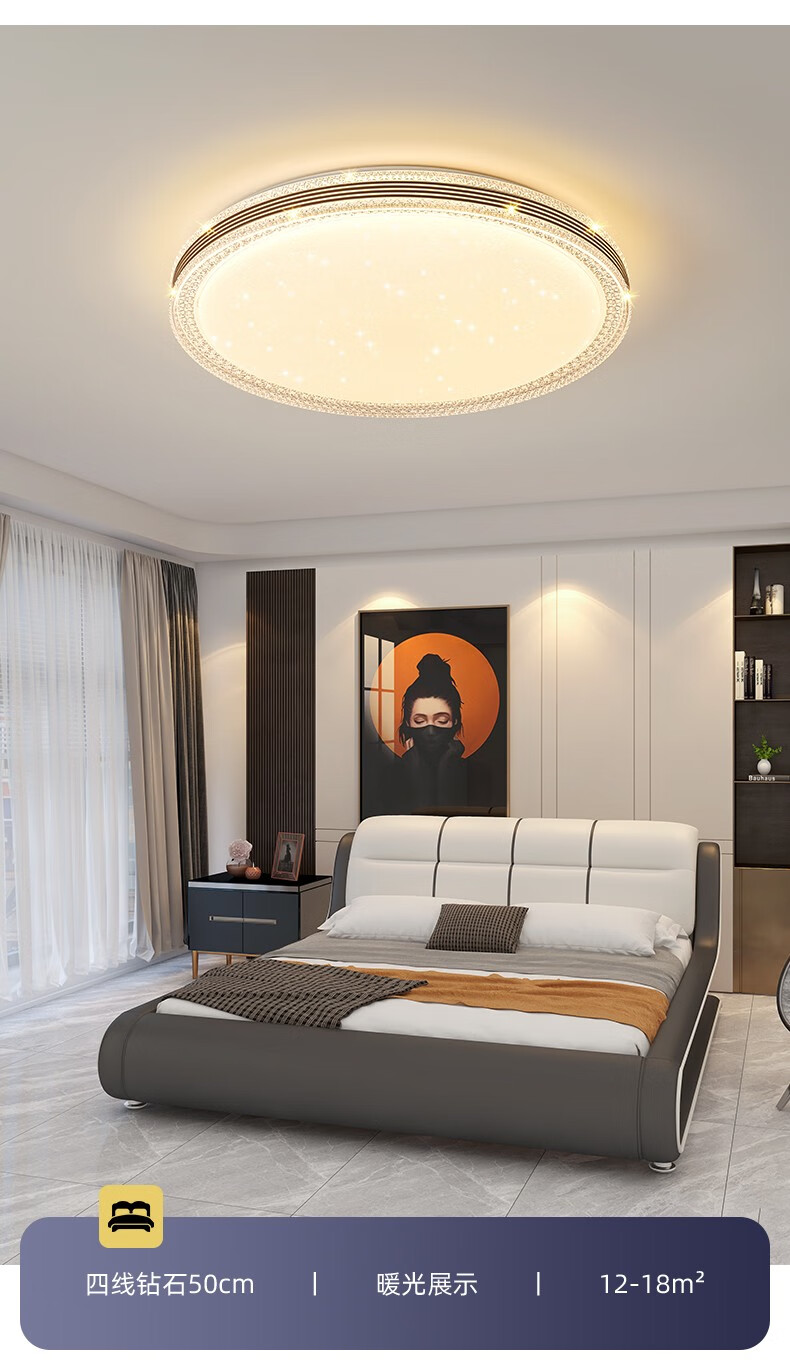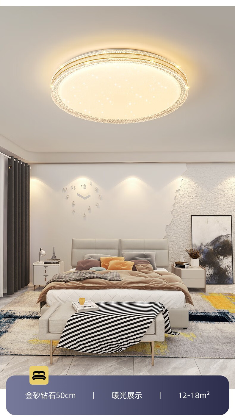朗科达卧室灯2023年新款主卧房间灯具现代简约网红款轻奢书房led吸顶灯金圆50cm调三色45W