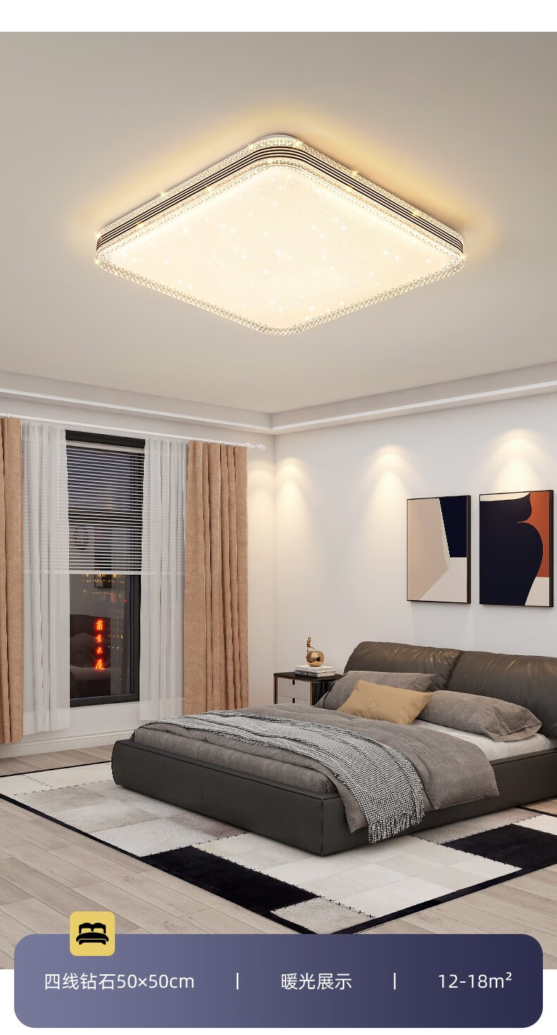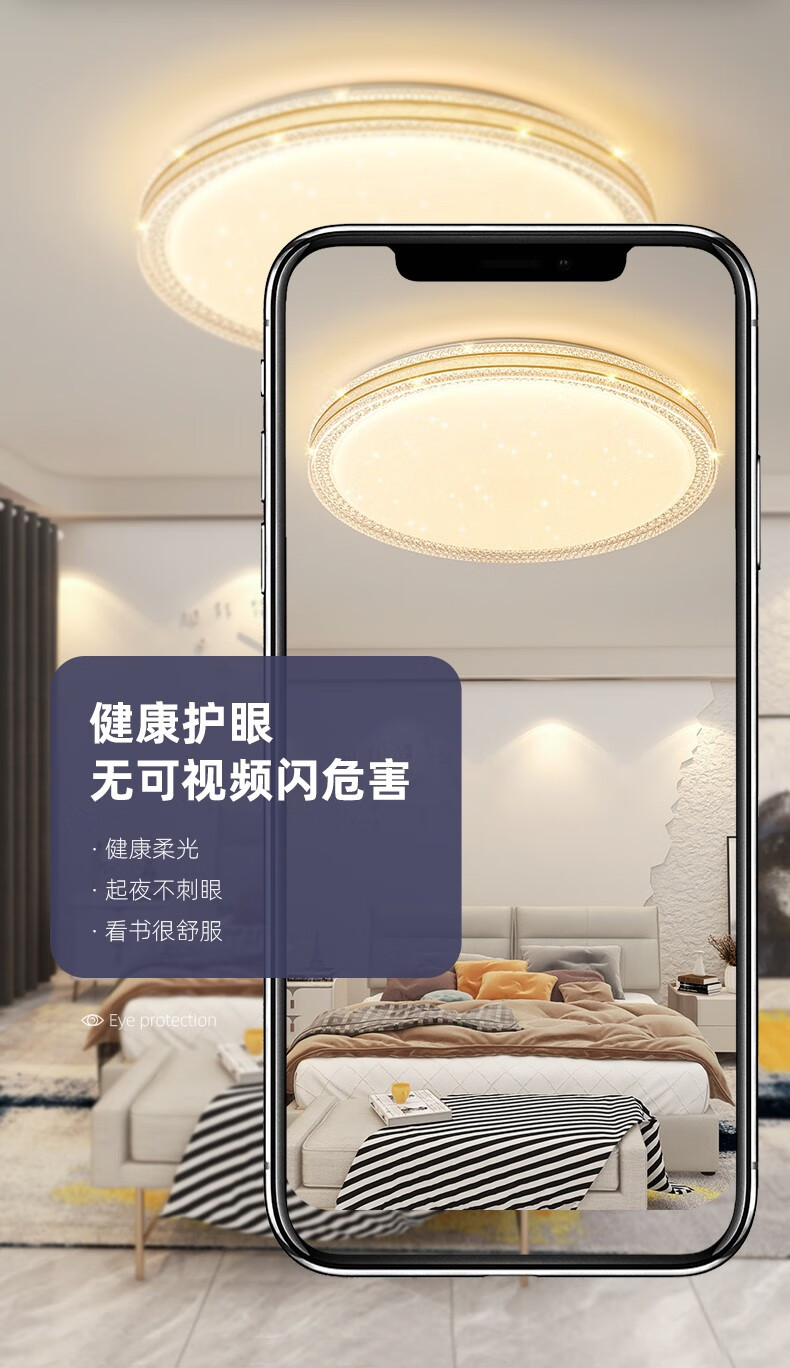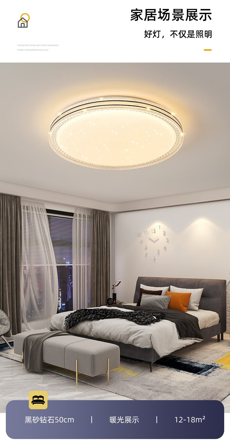 朗科达卧室灯2023年新款主卧房间灯具现代简约网红款轻奢书房led吸顶灯金圆50cm调三色45W
